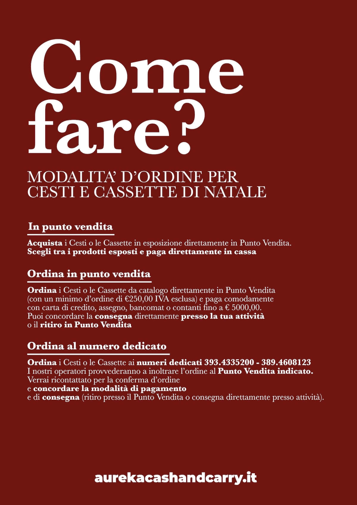 Modalità d’ordine per cesti e cassette di Natale.